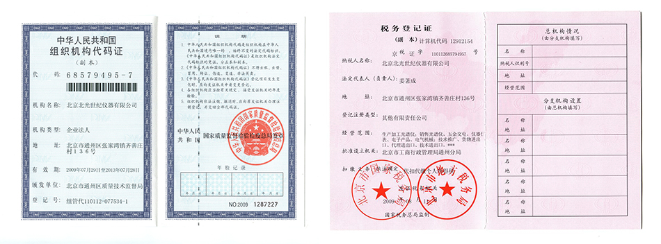 BeiJing Optical Instrument Factory Certificate Of Registration Member Certificate